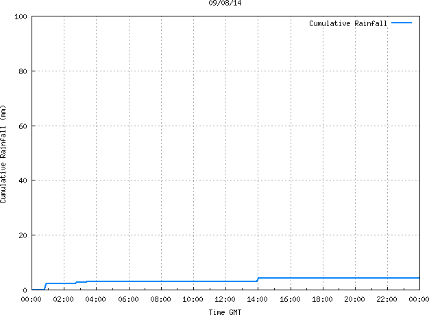 - Max Rainfall Rate: 24.00 mm h-1 Time: 0:52:26 GMT