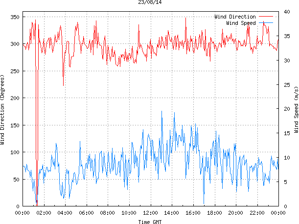 - Max Wind Speed: 19.6 ms-1 Time: 13:02:26 GMT