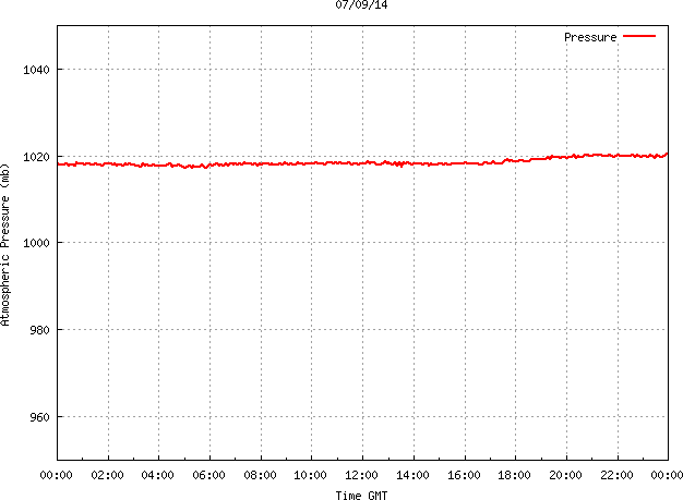 The PML meteorological station, situated on the south-west corner of the building roof, consists of a Hygroclip S3 temperature and humidity sensor housed in a radiation shield, a Mierij Meteo solid state wind sensor (MMW-005), a Chelsea instruments half-hemisphere PAR sensor, a Li-Cor pyranometer (LI-200SZ) and an Omni Instruments 6" tipping bucket raingauge (RG200). The data are logged every 5 minutes using a Pace Scientific XR5 data logger. The real-time rainfall data is likely in error - the correct values will be displayed after a time lag of approximately 24 hours. The meteorological station is sheltered from winds in the north-east and underestimates winds from this quarter. To use these data please contact Dr Tim Smyth.