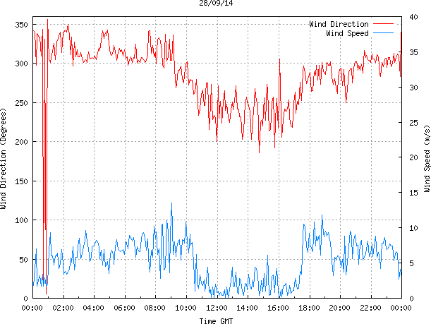 - Max Wind Speed: 13.6 ms-1 Time: 9:02:26 GMT
