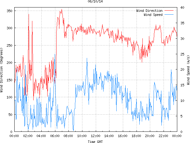 - Max Wind Speed: 24.9 ms-1 Time: 5:57:26 GMT