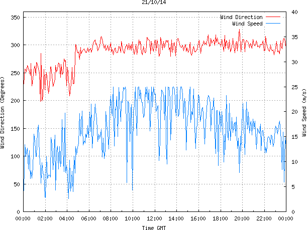 - Max Wind Speed: 25.0 ms-1 Time: 10:12:26 GMT
