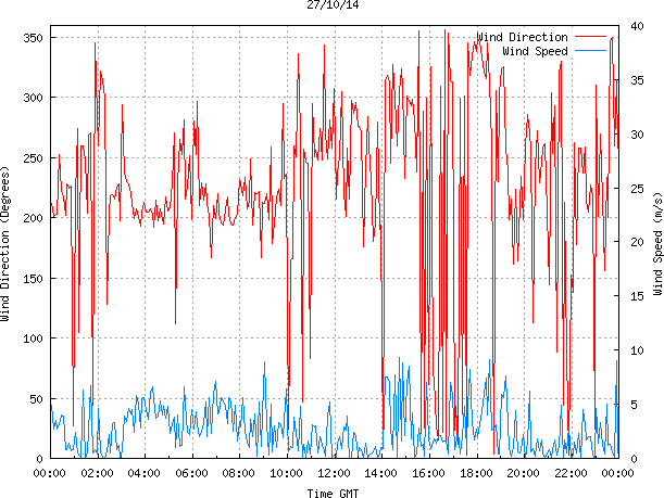 - Max Wind Speed: 9.4 ms-1 Time: 14:42:26 GMT