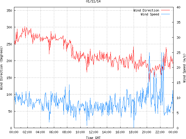 - Max Wind Speed: 25.0 ms-1 Time: 20:22:26 GMT