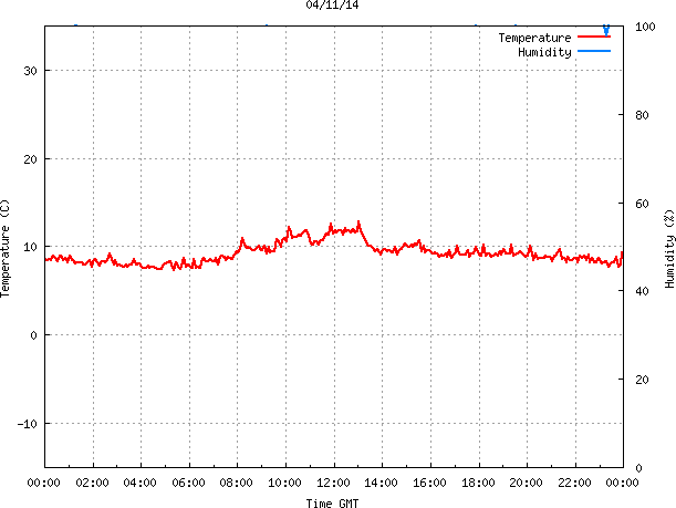 - Max Temp: 12.9 °C Time: 13:02:26 GMT