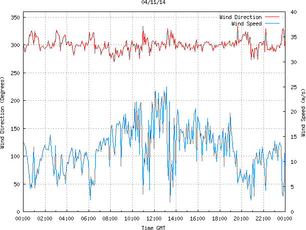 - Max Wind Speed: 25.0 ms-1 Time: 13:07:26 GMT
