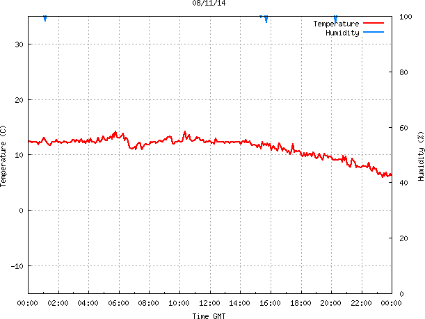 - Max Temp: 14.2 °C Time: 5:47:26 GMT