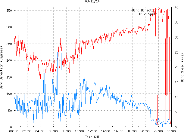 - Max Wind Speed: 25.0 ms-1 Time: 6:37:26 GMT