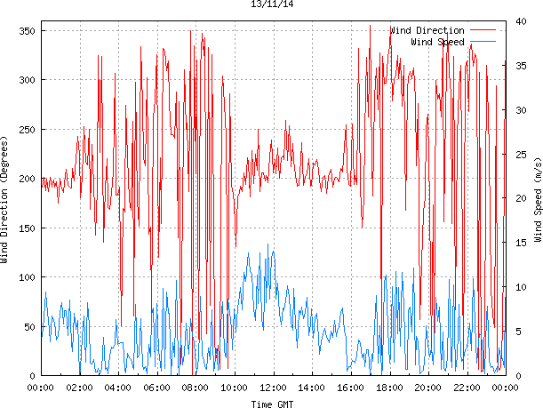 - Max Wind Speed: 14.9 ms-1 Time: 11:42:26 GMT