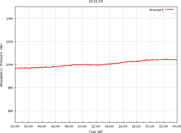 The PML meteorological station, situated on the south-west corner of the building roof, consists of a Hygroclip S3 temperature and humidity sensor housed in a radiation shield, a Mierij Meteo solid state wind sensor (MMW-005), a Chelsea instruments half-hemisphere PAR sensor, a Li-Cor pyranometer (LI-200SZ) and an Omni Instruments 6" tipping bucket raingauge (RG200). The data are logged every 5 minutes using a Pace Scientific XR5 data logger. The real-time rainfall data is likely in error - the correct values will be displayed after a time lag of approximately 24 hours. The meteorological station is sheltered from winds in the north-east and underestimates winds from this quarter. To use these data please contact Dr Tim Smyth.