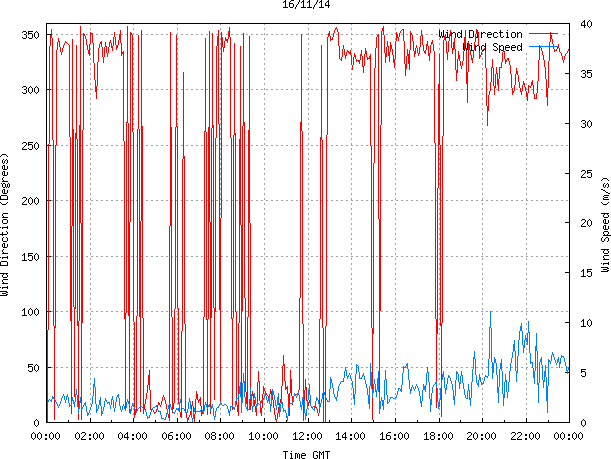 - Max Wind Speed: 11.1 ms-1 Time: 20:22:26 GMT