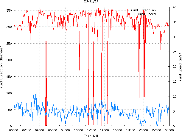 - Max Wind Speed: 11.3 ms-1 Time: 3:31:30 GMT