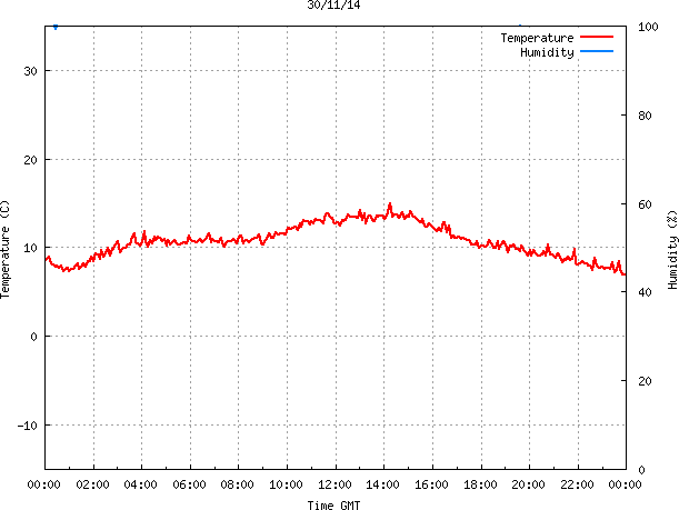 - Max Temp: 14.9 °C Time: 14:16:30 GMT