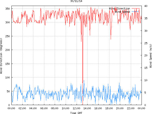 - Max Wind Speed: 9.9 ms-1 Time: 13:21:30 GMT