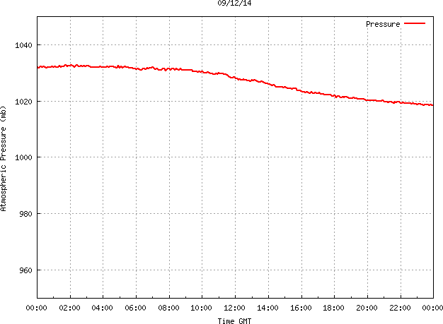 The PML meteorological station, situated on the south-west corner of the building roof, consists of a Hygroclip S3 temperature and humidity sensor housed in a radiation shield, a Mierij Meteo solid state wind sensor (MMW-005), a Chelsea instruments half-hemisphere PAR sensor, a Li-Cor pyranometer (LI-200SZ) and an Omni Instruments 6" tipping bucket raingauge (RG200). The data are logged every 5 minutes using a Pace Scientific XR5 data logger. The real-time rainfall data is likely in error - the correct values will be displayed after a time lag of approximately 24 hours. The meteorological station is sheltered from winds in the north-east and underestimates winds from this quarter. To use these data please contact Dr Tim Smyth.
