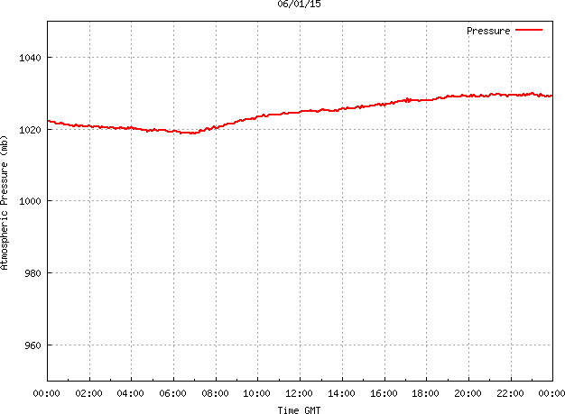 The PML meteorological station, situated on the south-west corner of the building roof, consists of a Hygroclip S3 temperature and humidity sensor housed in a radiation shield, a Mierij Meteo solid state wind sensor (MMW-005), a Chelsea instruments half-hemisphere PAR sensor, a Li-Cor pyranometer (LI-200SZ) and an Omni Instruments 6" tipping bucket raingauge (RG200). The data are logged every 5 minutes using a Pace Scientific XR5 data logger. The real-time rainfall data is likely in error - the correct values will be displayed after a time lag of approximately 24 hours. The meteorological station is sheltered from winds in the north-east and underestimates winds from this quarter. To use these data please contact Dr Tim Smyth.