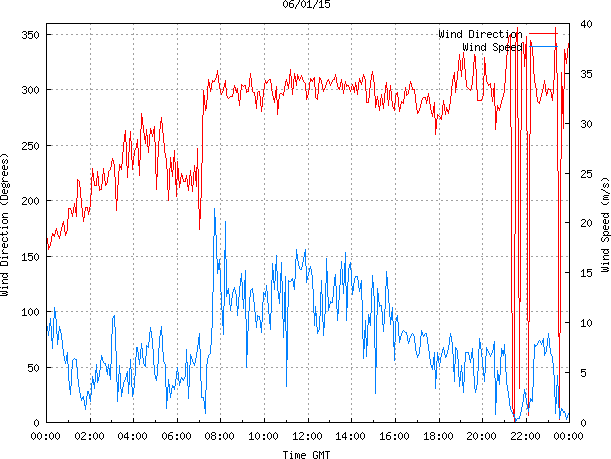 - Max Wind Speed: 21.4 ms-1 Time: 7:41:30 GMT