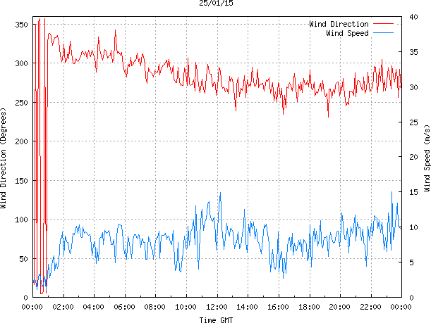 - Max Wind Speed: 15.0 ms-1 Time: 23:21:30 GMT