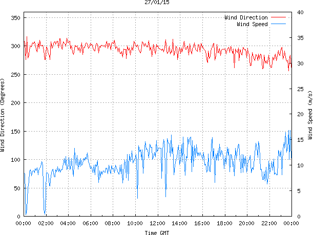 - Max Wind Speed: 16.9 ms-1 Time: 23:41:30 GMT