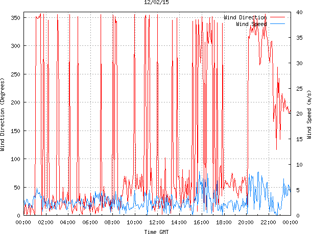 - Max Wind Speed: 8.7 ms-1 Time: 15:46:30 GMT