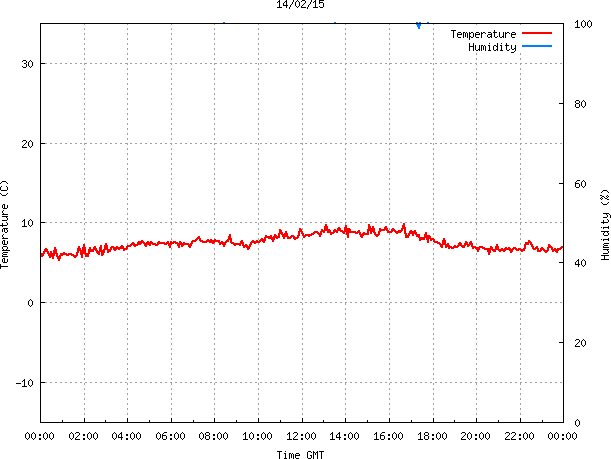 - Max Temp: 9.8 °C Time: 16:41:30 GMT