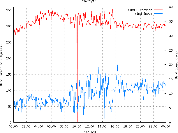 - Max Wind Speed: 19.9 ms-1 Time: 16:21:30 GMT