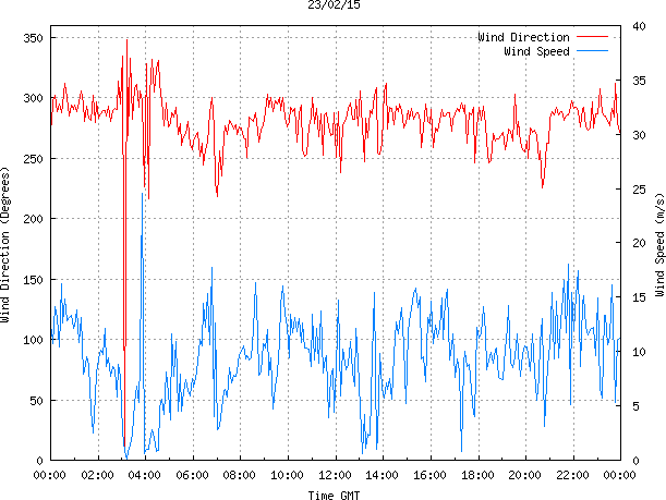 - Max Wind Speed: 24.6 ms-1 Time: 3:51:30 GMT