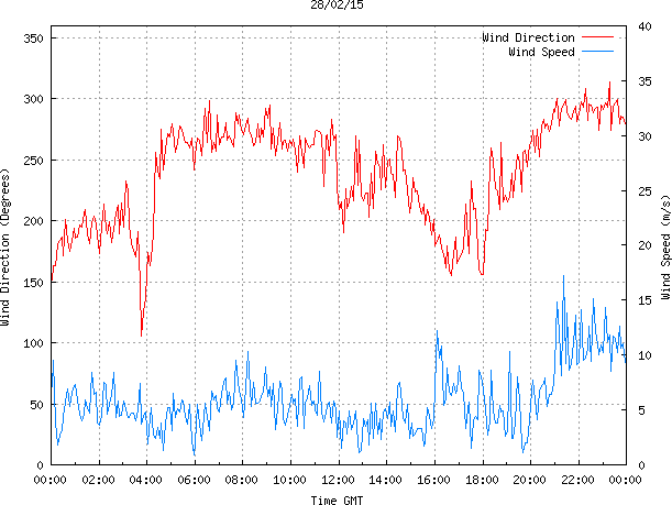 - Max Wind Speed: 17.2 ms-1 Time: 21:21:30 GMT