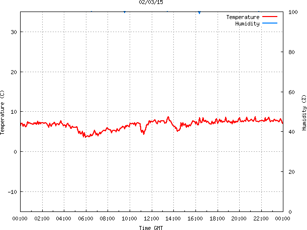 - Max Temp: 8.7 °C Time: 13:31:30 GMT