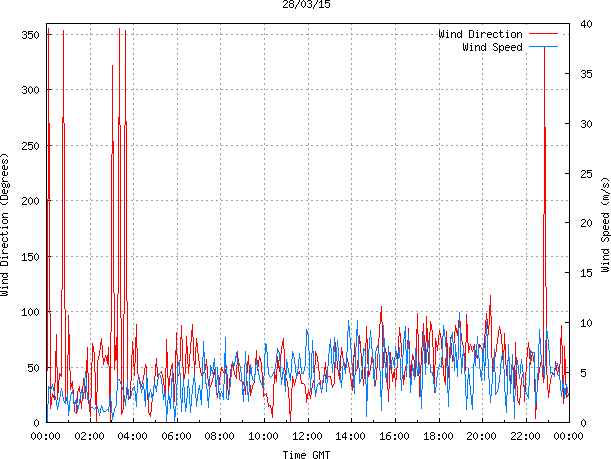 - Max Wind Speed: 11.0 ms-1 Time: 18:56:30 GMT