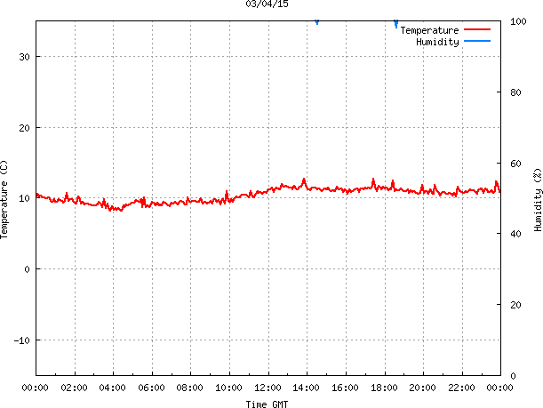 - Max Temp: 12.8 °C Time: 13:51:30 GMT