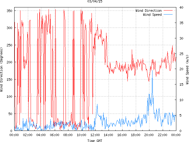 - Max Wind Speed: 19.5 ms-1 Time: 20:26:30 GMT