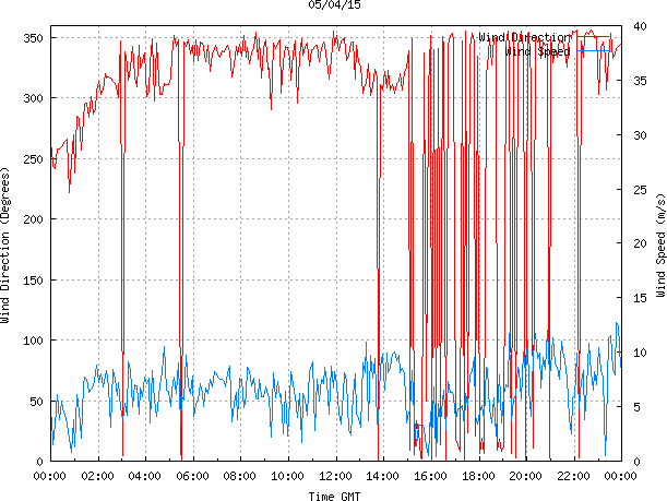 - Max Wind Speed: 12.8 ms-1 Time: 23:46:30 GMT