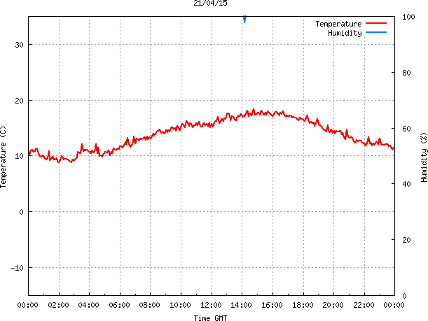 - Max Temp: 18.4 °C Time: 14:46:30 GMT