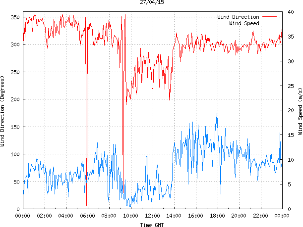- Max Wind Speed: 19.3 ms-1 Time: 17:56:30 GMT