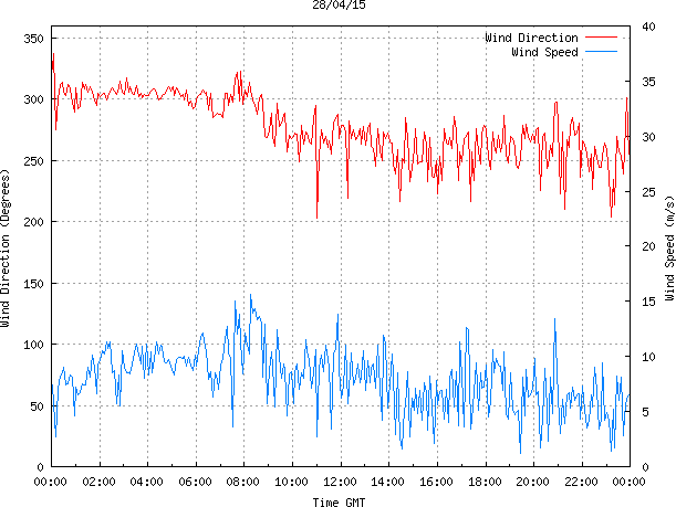 - Max Wind Speed: 15.6 ms-1 Time: 8:16:30 GMT