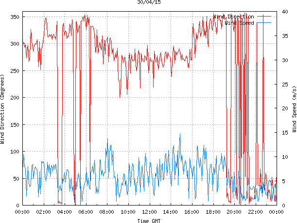 - Max Wind Speed: 14.7 ms-1 Time: 14:51:30 GMT