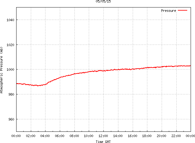 The PML meteorological station, situated on the south-west corner of the building roof, consists of a Hygroclip S3 temperature and humidity sensor housed in a radiation shield, a Mierij Meteo solid state wind sensor (MMW-005), a Chelsea instruments half-hemisphere PAR sensor, a Li-Cor pyranometer (LI-200SZ) and an Omni Instruments 6" tipping bucket raingauge (RG200). The data are logged every 5 minutes using a Pace Scientific XR5 data logger. The real-time rainfall data is likely in error - the correct values will be displayed after a time lag of approximately 24 hours. The meteorological station is sheltered from winds in the north-east and underestimates winds from this quarter. To use these data please contact Dr Tim Smyth.