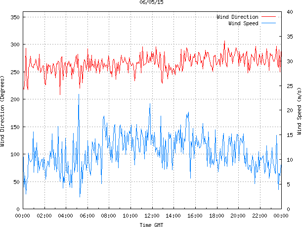 - Max Wind Speed: 23.2 ms-1 Time: 5:11:30 GMT
