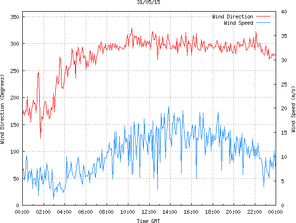 - Max Wind Speed: 20.5 ms-1 Time: 13:51:30 GMT