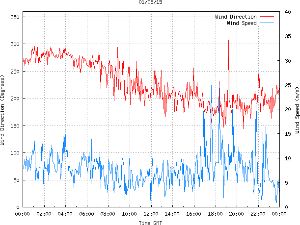 - Max Wind Speed: 25.0 ms-1 Time: 17:36:30 GMT