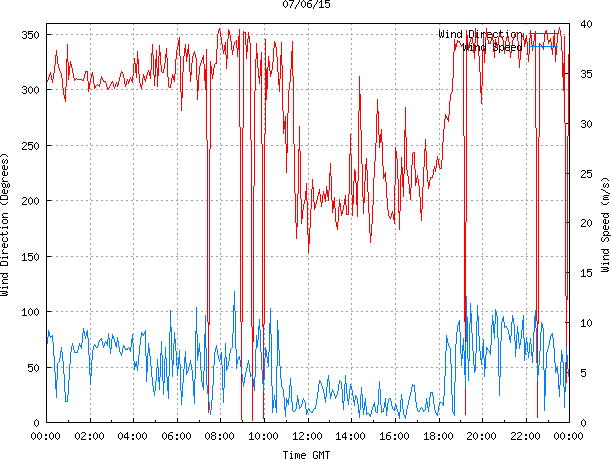 - Max Wind Speed: 13.1 ms-1 Time: 8:36:30 GMT