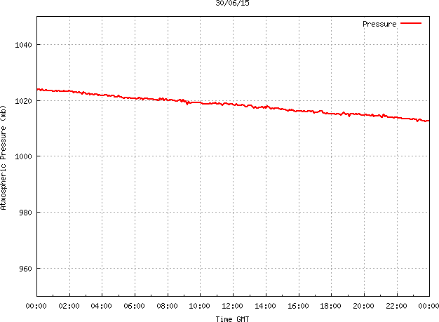 The PML meteorological station, situated on the south-west corner of the building roof, consists of a Hygroclip S3 temperature and humidity sensor housed in a radiation shield, a Mierij Meteo solid state wind sensor (MMW-005), a Chelsea instruments half-hemisphere PAR sensor, a Li-Cor pyranometer (LI-200SZ) and an Omni Instruments 6" tipping bucket raingauge (RG200). The data are logged every 5 minutes using a Pace Scientific XR5 data logger. The real-time rainfall data is likely in error - the correct values will be displayed after a time lag of approximately 24 hours. The meteorological station is sheltered from winds in the north-east and underestimates winds from this quarter. To use these data please contact Dr Tim Smyth.