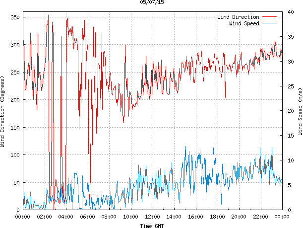 - Max Wind Speed: 12.9 ms-1 Time: 15:01:30 GMT