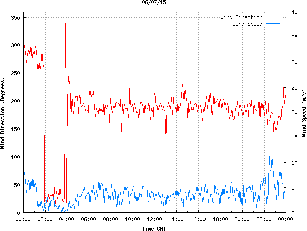 - Max Wind Speed: 12.2 ms-1 Time: 22:26:30 GMT