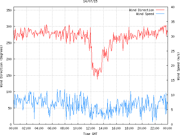 - Max Wind Speed: 11.9 ms-1 Time: 6:46:30 GMT
