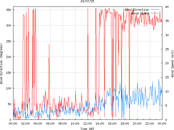 - Max Wind Speed: 14.3 ms-1 Time: 23:26:30 GMT