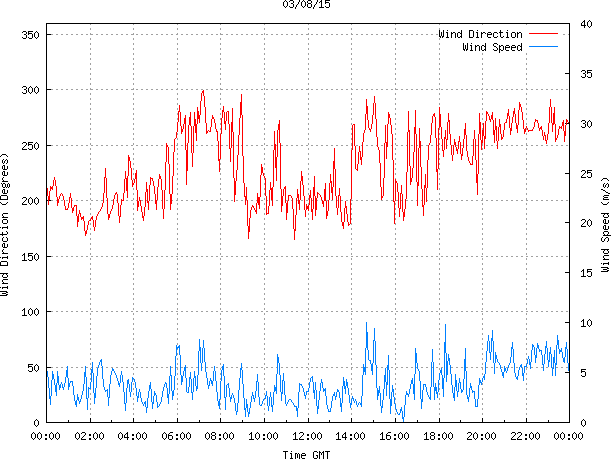 - Max Wind Speed: 10.0 ms-1 Time: 14:41:30 GMT