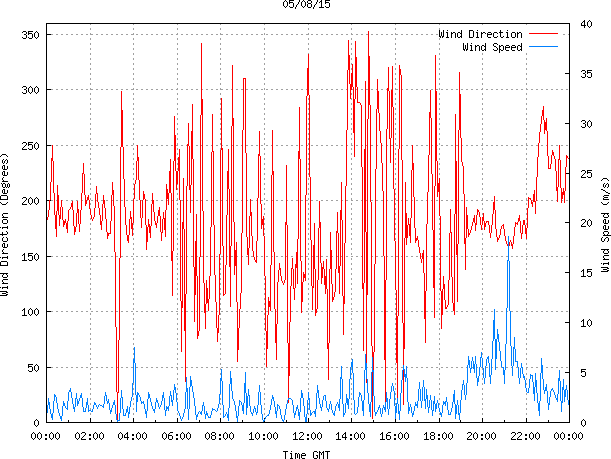 - Max Wind Speed: 18.7 ms-1 Time: 21:11:30 GMT