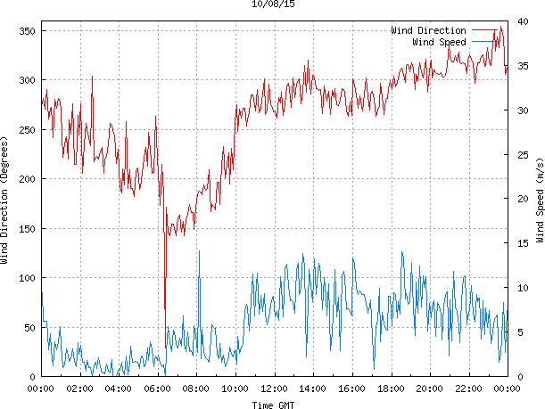 - Max Wind Speed: 14.2 ms-1 Time: 8:06:30 GMT